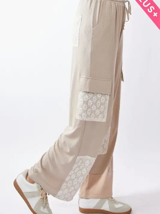 These Knit Wide Leg PLUS Pants combine comfort and style with a ribbed texture that adds subtle dimension. Designed with a flattering wide-leg cut, they offer ease of movement and a modern silhouette. Delicate lace detailing enhances their elegant look, while practical pockets provide everyday convenience, making them a versatile addition to any wardrobe. Perfectly tailored for plus sizes, these pants deliver both sophistication and comfort in one garment.